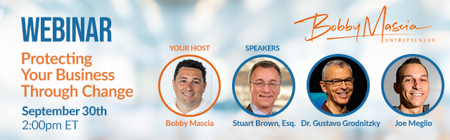 Stuart M. Brown joined the webinar “Protecting Your Business Through Change” hosted by Bobby Mascia, Founder and CEO of Green Ridge Wealth Planning, on Sept. 30 at 2:00 p.m. ET.